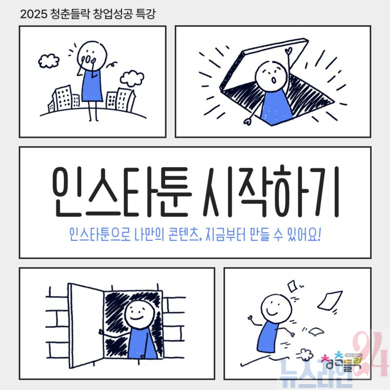 현직 인스타툰 작가의 1:1 코칭을 통해 콘텐츠 제작 및 브랜딩, 창업 연계 방안까지 배울 수 있다. 수업은 8월 12일(화)부터 20일(수)까지, 매주 화·수요일 오후 7시에 총 4회차로 진행된다.