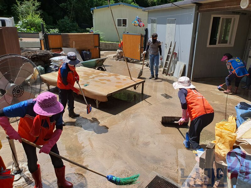 자원봉사자들은 폭염 속에서도 토사 제거, 침수 가옥 청소, 가재도구 정리 등의 작업에 힘을 보탰다.