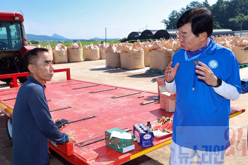김성 장흥군수는 23일 관내 우리 밀 수매 현장을 방문하여 밀 수매농가를 격려하고 애로 사항을 청취했다.