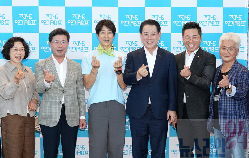 김영록 전라남도지사가 28일 오후 광양 문화예술회관에서 열린 ‘제14회 최수종과 함께하는 전남연기캠프 입소식’에 참석, 주요내빈들과 기념촬영을 하고 있다.