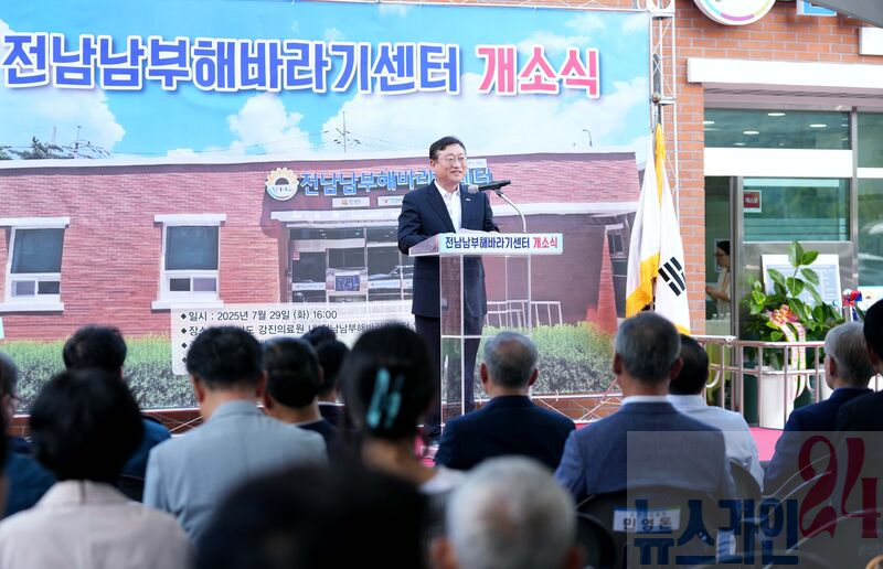명창환 전라남도 행정부지사가 29일 강진의료원에서 열린 ‘전남남부해바라기센터 개소식’에 참석, 인사말을 하고 있다.