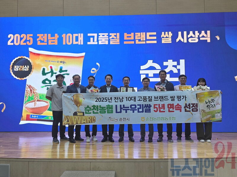 순천시(시장 노관규)는 순천 쌀 대표 브랜드인 ‘나누우리’가 2025년 전남 10대 고품질 브랜드 쌀 시상식에서 ‘장려상’을 수상했다고 밝혔다.