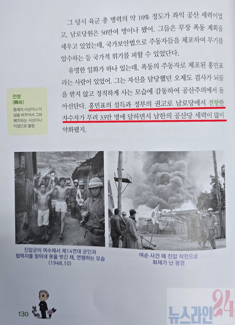 ‘엄마가 들려주는 이승만 건국 대통령 이야기’ 중 여순사건을 왜곡하는 내용이 담긴 페이지이들 학교는 초등학교 5개, 중학교 4개, 고등학교 1개로 4개 초등학교의 도서관은 5건의 대출 이력까지 확인됐다. 특히 여수의 모 초등학교는 7권을 비치 중인 것으로 드러났다.
