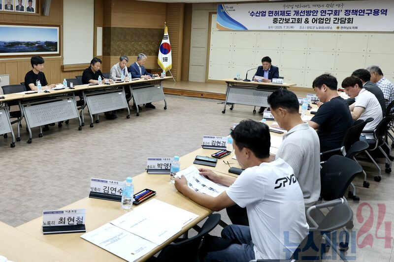 전라남도의회 의원연구단체인 수산업 면허제도 개선방안 연구회(대표의원 신의준)는7월 31일 완도군 노화읍사무소에서 ‘수산업 면허제도 개선에 관한 연구’ 용역에 대한 중간보고회를 개최했다.