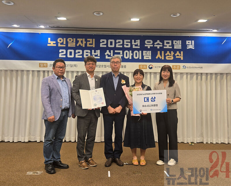 여수시니어클럽(관장 이준)이 한국노인인력개발원 주관 ‘2025년 노인일자리사업 우수모델’ 공모에서 보건복지부장관상 ‘대상’을 수상했다.