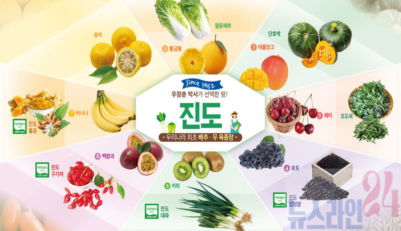 특히, 농림축산식품부에서 인증하는 지리적표시 4대 우수 농산물인 진도검정쌀, 진도대파, 진도구기자, 진도울금과 조도쑥, 월동배추, 유자, 단호박 등 총 15개 품목을 담았다.