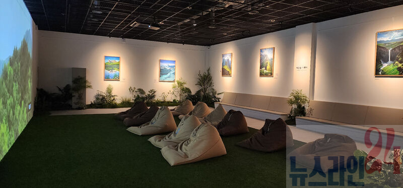 제3전시실은 푹신한 빈백(콩주머니) 소파에 몸을 파묻고 잔잔한 음악과 함께 스크린에 펼쳐지는 어치계곡의 구시폭포 등 백운산의 사계를 그린 미디어아트를 감상할 수 있다.
