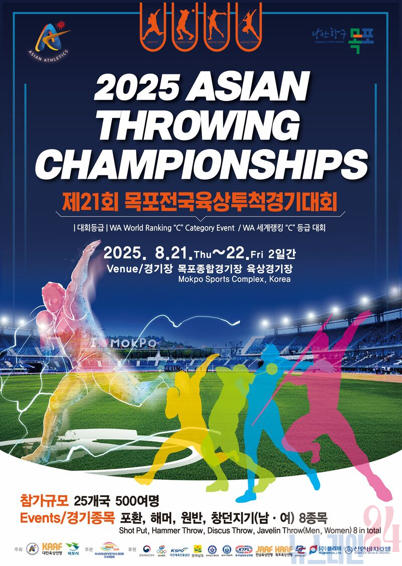 아시아 육상 투척 강자들, 8월 목포에 모인다! 2025 아시아투척선수권대회 및 제21회 목포전국육상투척경기대회 개최 25개국 500여 명 참가, 세계랭킹 인정 대회로 위상 강화