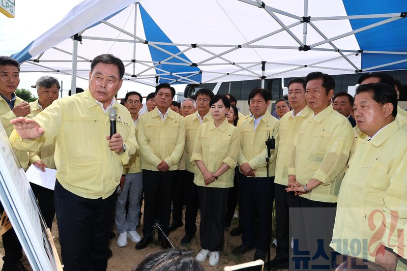이날 현장 최고위원회에는 더불어민주당 정청래 대표, 서삼석 최고위원을 비롯한 지도부 등 16명이 대거 참석했으며, 현장 브리핑에서 김산 군수는 폭우 시 통수단면 부족으로 하천 범람과 무안읍 저지대 상습침수의 원인이 되는 송촌교 재가설과 무안천 하류구간 하천 정비사업을 건의했다.