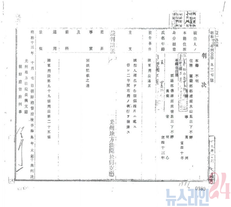 이운선 판결문영암 지역, ‘부녀자 징발 소문’으로 2명 실형