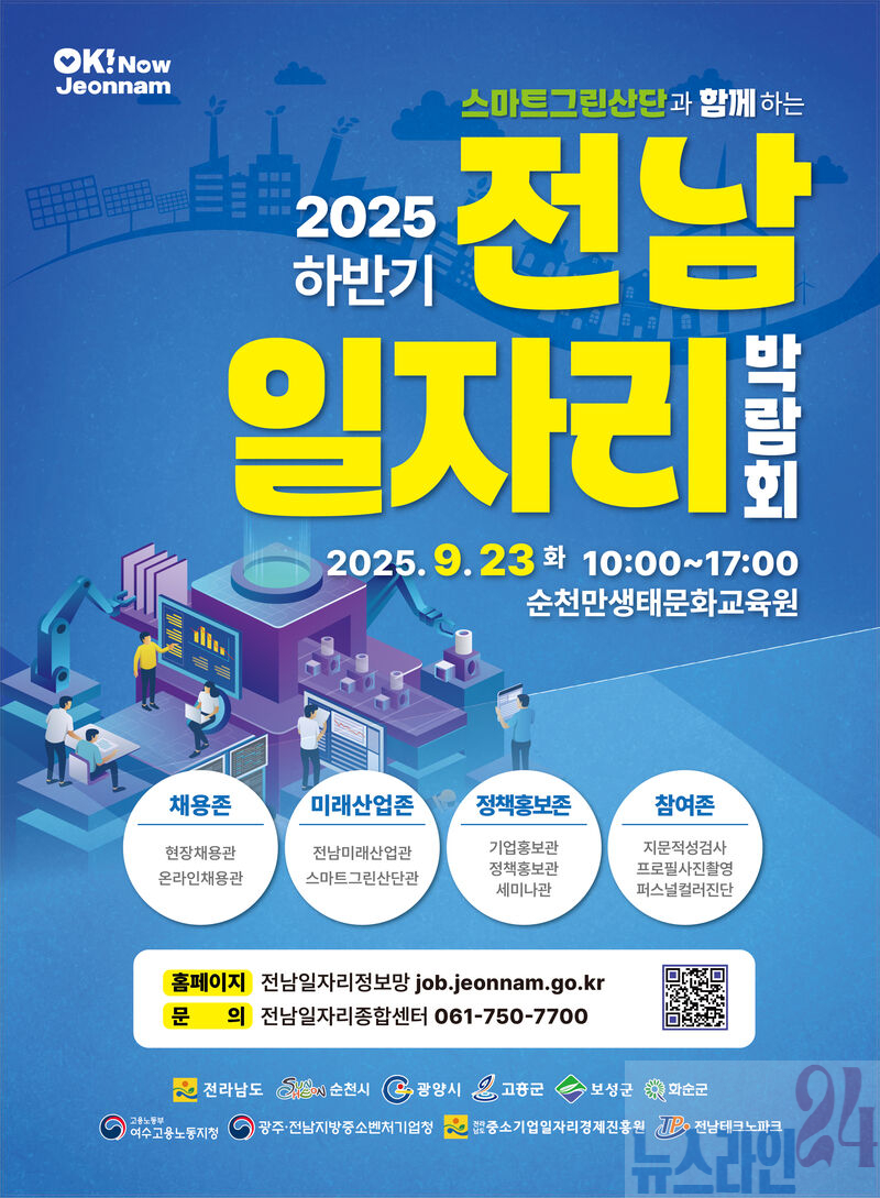 화순군(군수 구복규)이 오는 9월 23일 순천만생태문화교육원에서 열리는 ‘2025 하반기 전남 일자리박람회’에 참여할 기업을 모집한다.