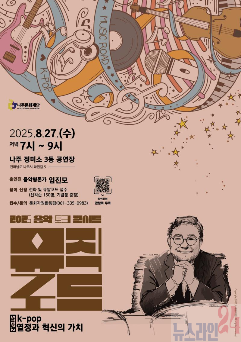 19일 문화재단에 따르면 오는 8월 27일 나주정미소에서 열리는 ‘뮤직로드 Step 2’에는 국내 대표 대중음악 평론가 임진모를 초청해 K-POP의 열정과 혁신을 주제로 음악과 이야기를 풀어낼 예정이다.