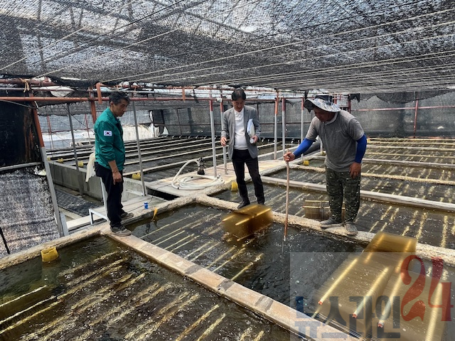 또한 해상 전복가두리 및 육상양식장을 지속적으로 방문하여 양식방법별 양식장 관리요령을 지도하고, 고수온 대응을 위한 장비 점검을 실시하고 있다.