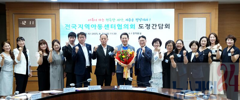 김영록 전라남도지사가 22일 도청 접견실에서 전국지역아동센터협의회 임원진들과 도정간담회를 갖고 기념촬영을 하고 있다.