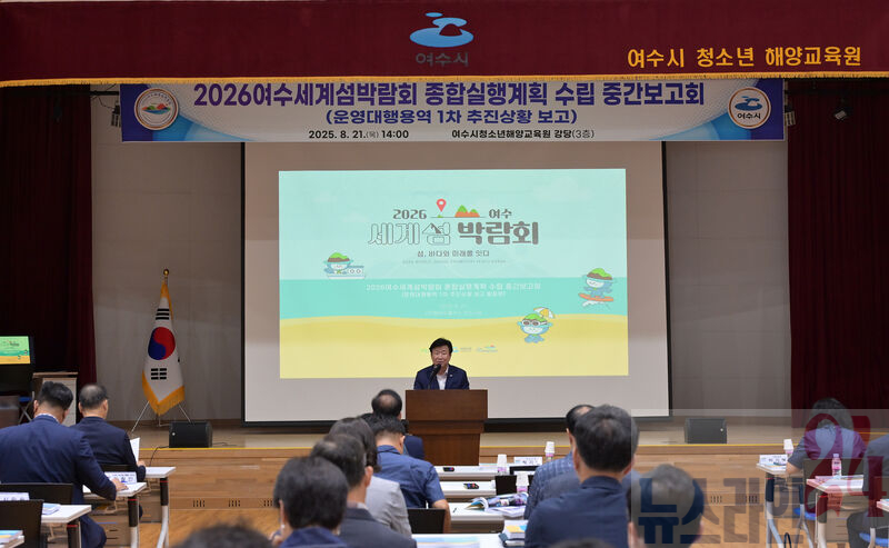 2026여수세계섬박람회조직위원회(이하 ‘조직위’)가 지난 21일 여수시청소년해양교육원에서「2026여수세계섬박람회 종합실행계획 수립」중간보고회를 개최했다.