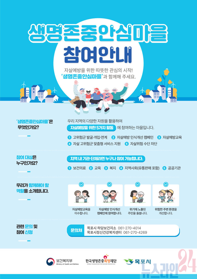 목포시는 ‘생명존중 안심마을’ 사업을 본격 추진하기 위해, 사업 참여기관 및 단체를 모집한다.