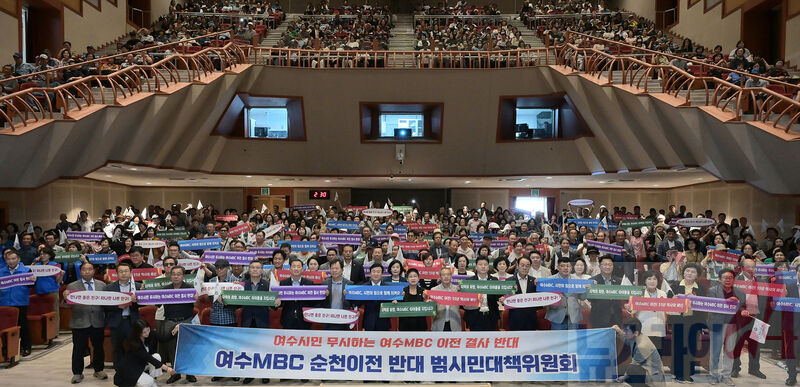 ‘여수MBC 순천이전 반대 범시민대책위원회(이하 대책위)’가 27일 오후 2시 여수시민회관에서 출범식을 갖고, 선언문을 통해 “시민 의견수렴 없는 일방적 이전추진을 즉각 중단하고 철회하라”며 이같이 밝혔다.
