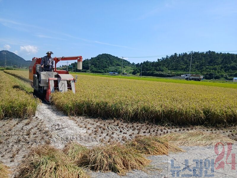 신안군 도초면은 지난 27일, 올해 첫 벼를 수확했다고 밝혔다.