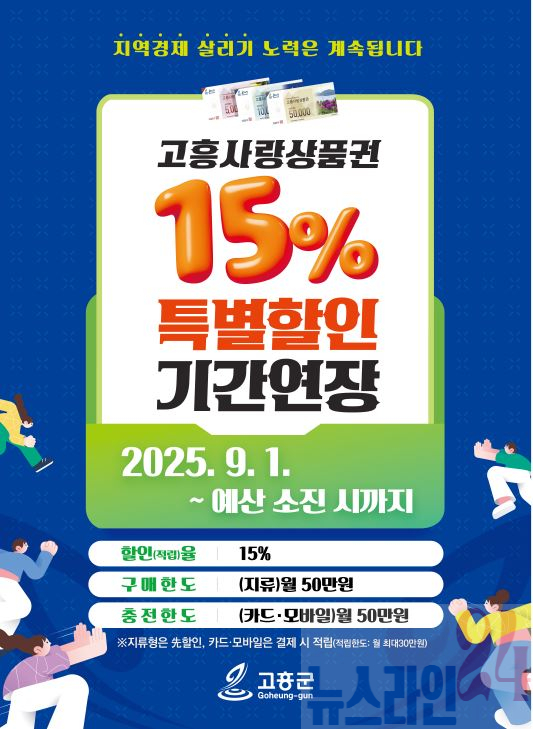고흥군, 지역경제 살리는‘고흥사랑상품권’ 15% 특별할인 연장 9월 1일부터 예산 소진 시까지 진행.... 지역 상권과 상생은 계속된다
