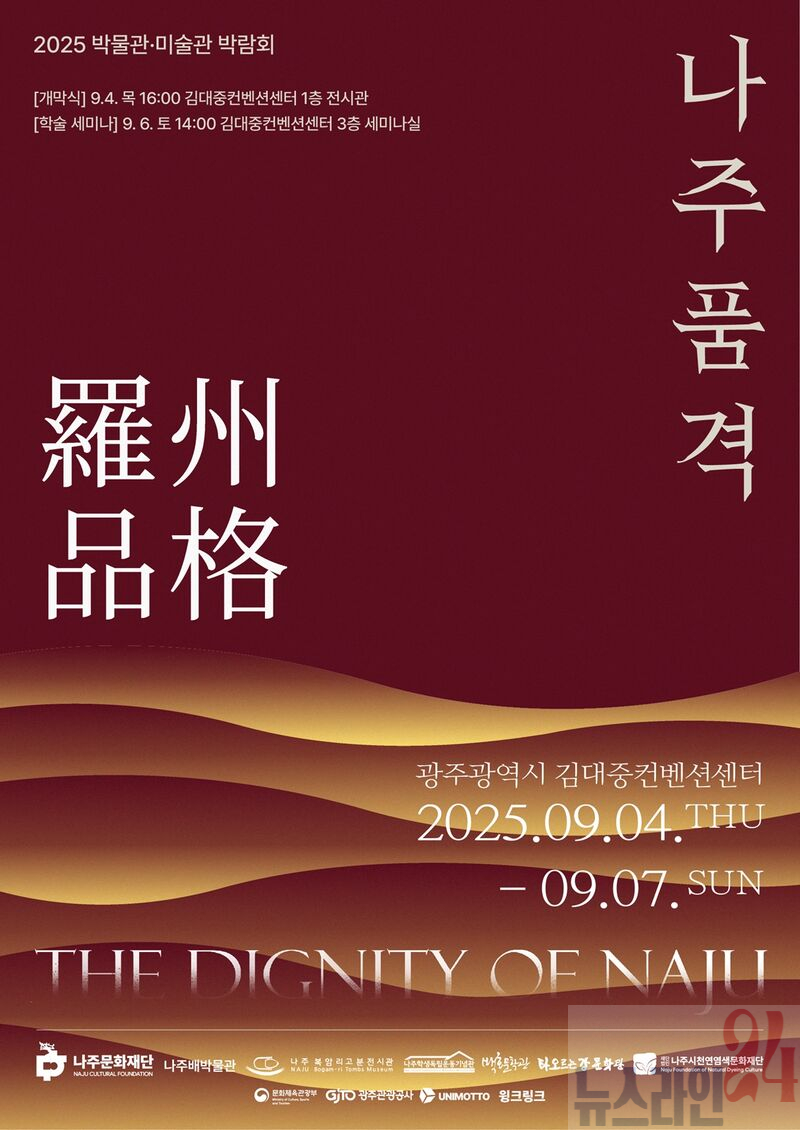 나주문화재단이 오는 9월 4일부터 7일까지 광주 김대중컨벤션센터에서 열리는 ‘2025 박물관·미술관 박람회’에 참가해 나주의 역사와 문화를 알리는 특별기획전과 공동 홍보관을 운영하며 ‘나주의 품격’을 전국에 선보인다.